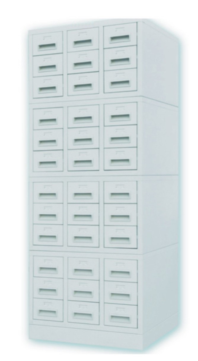 ●柜體采用0.8mm寶鋼冷軋鋼板,抽屜自動(dòng)歸位功能,每套4組,每組9個(gè)抽屜,共36個(gè)抽屜,約放玻片55000片。柜體經(jīng)防銹處理,靜電噴塑工藝,整體美觀大方。利用槽式滑輪,起始點(diǎn)配高強(qiáng)度滑輪,抽屜推拉順暢,同時(shí)防止抽屜拉出來過長造成意外跌落。另配高彈性減震墊,可使抽屜關(guān)閉時(shí)減輕與柜體的碰撞,減少噪音。